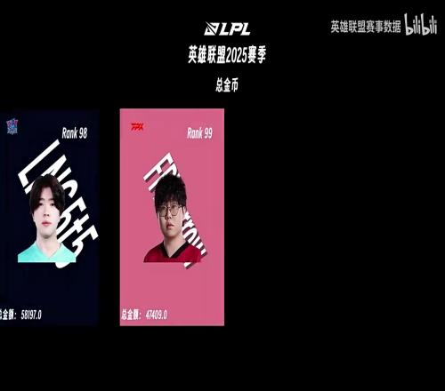 電競資訊10月4日稱 英雄聯(lián)盟賽事數(shù)據(jù)發(fā)布了2025LPL賽季選手總金幣排行: